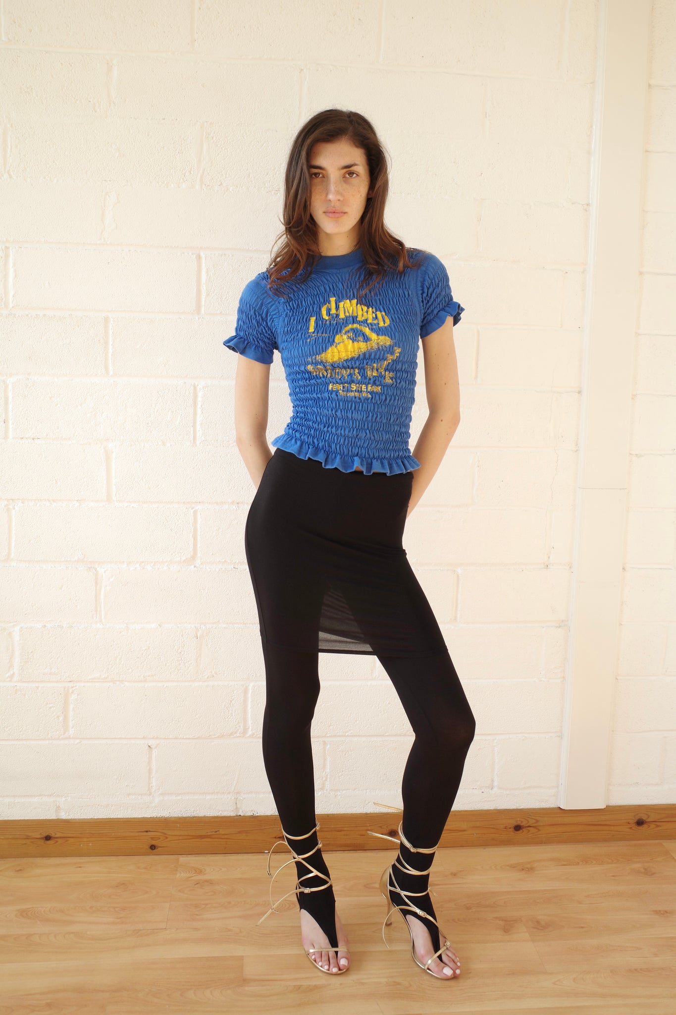 Featured in A/W 2025's collection All that Jazz, the Red skirt thong legging is made from a lightweight Tencel knit jersey. The hem of the legging features a 'thong' stirrup that passes between your toes rather than under the arch of your foot and a skirt layer that is trapped in the waistband. The waist is finished with an elastic waistband that is wrapped in the same fabric for ultimate comfort. Comfortable, fun, a little freaky. Made in London.