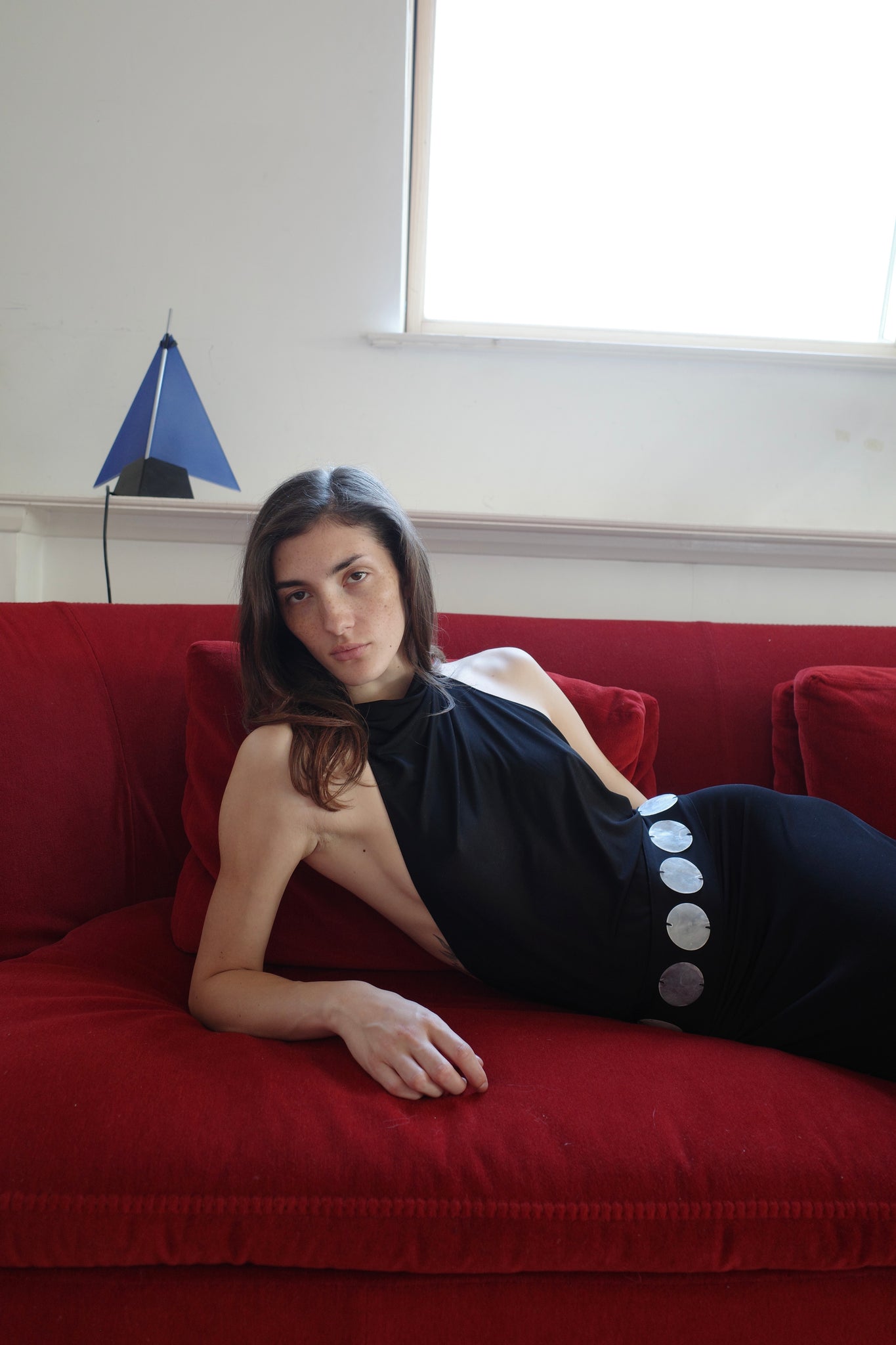 From A/W 2025's All that Jazz, the Jersey Halter Maxi dress is made from a soft cupro fabric, a by-product of cottonseed oil production. The dress features a high-cowl neck halter that ties in a knot at the back neck, cut in a column shape with a slight flare at the knee. The dress has a low, scooped back with a single seam at the centre back. The sash belt is worn on the high hip, and is embroidered with mother of pearl pailettes. Sexy, simple, sensational. Made in London.